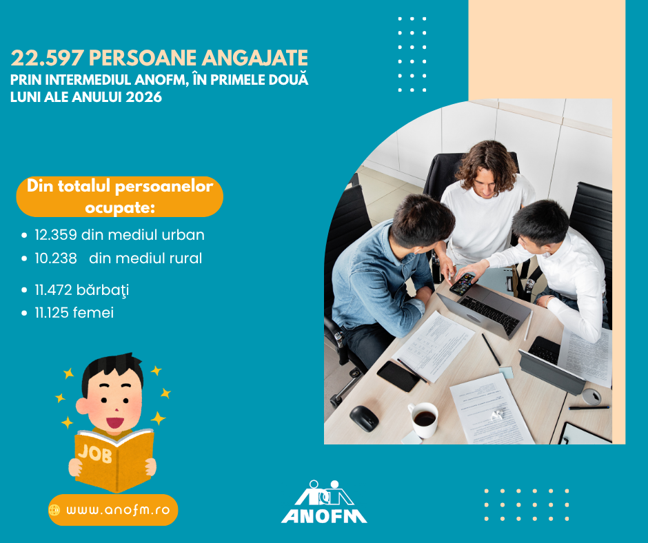 22.597 persoane angajate prin intermediul ANOFM, în primele două luni ale anului 2026