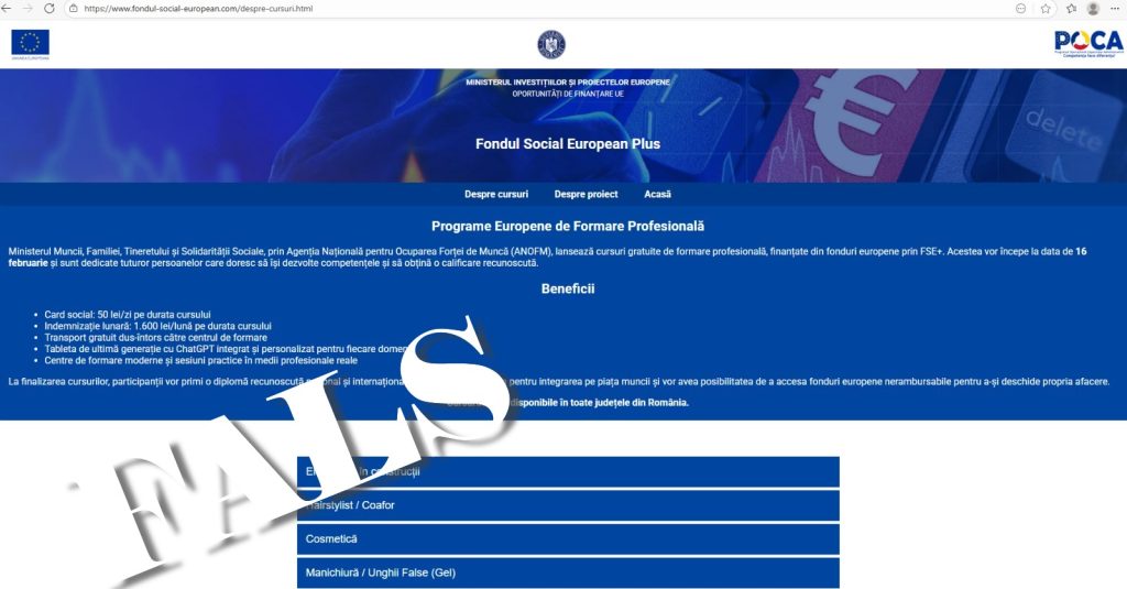 Agenția Națională pentru Ocuparea Forței de Muncă (ANOFM) informează publicul că a fost identificat un site neautorizat, disponibil la adresa https://www.fondul-social-european.com/, care face referire la proiectul „COMPETENT – Format, calificat, competitiv pe piața muncii!”, proiect implementat de ANOFM, dar care nu aparține instituției și nu este administrat de aceasta.
