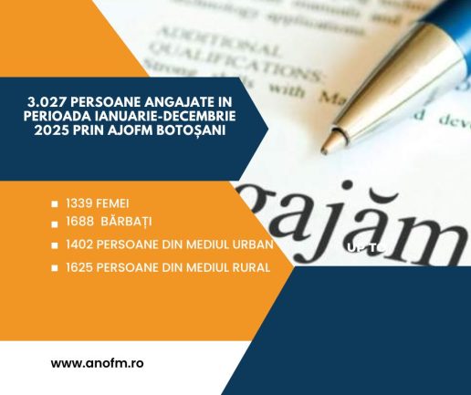 3.027 persoane angajate prin intermediul AJOFM Botoșani în anul 2025