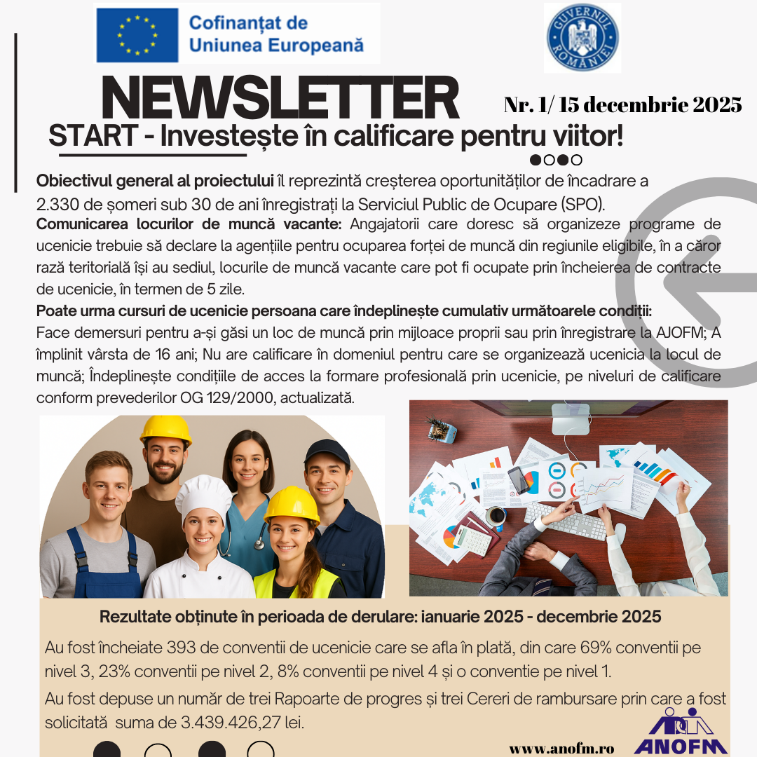 Comunicat de presă – ANOFM implementează proiectul “START – Investește în calificare pentru viitor!”