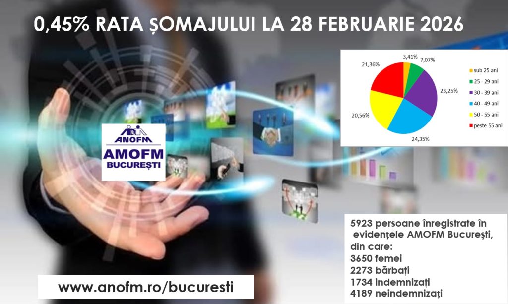 La sfârșitul lunii februarie, în evidențele Agenției Municipale pentru Ocuparea Forței de Muncă Bucureşti erau înregistrați 5923 șomeri (din care 3650 femei), rata șomajului fiind de 0,45%.