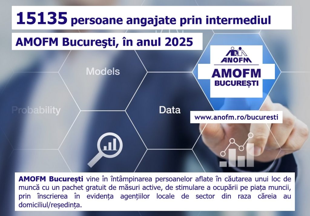 Ca urmare a implementării Programului  Naţional de Ocupare a Forţei de Muncă, prin intermediul AMOFM Bucureşti, în perioada 01.01-31.12.2025, au fost încadrate 15135 persoane. Din totalul persoanelor ocupate ȋn această perioadă, 5639 au fost peste 45 de ani (peste 55 ani, 1644), 5537 au vârsta cuprinsă între 35 și 45 de ani, 3205 au între 30-35 de ani, 374 au între 25 și 30 de ani (din care 212 tineri NEETs), iar 380 sunt tineri sub 25 de ani (dintre care 222 tineri NEETs).