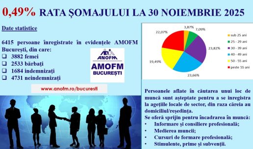 0,49% – rata şomajului înregistrat în evidenţele AMOFM Bucureşti în luna noiembrie 2025