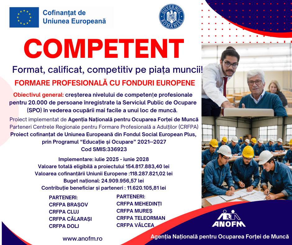 - 11.620.105,81 lei reprezintă contribuția proprie a ANOFM și a partenerilor (CRFPA)