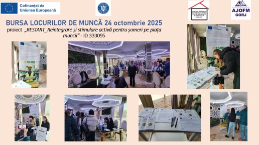 Bursa Locurilor de Muncă – 24.10.2025 proiect RESTART – Reintegrare și stimulare activă pentru șomeri pe piața muncii” – ID 333095