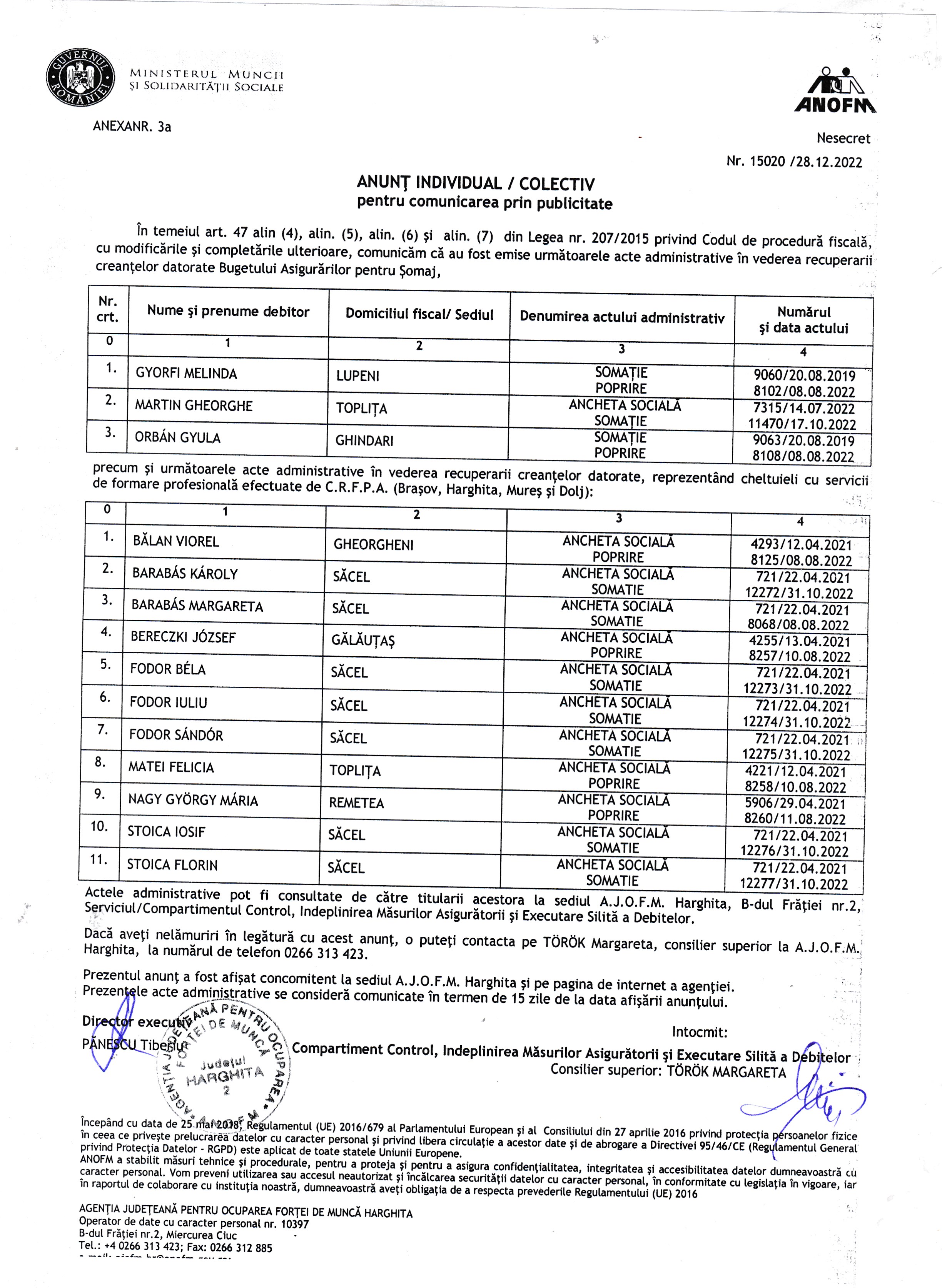 Debitori 2022 30/12/2022 Situație debitori Debitori 2022 ANUNT_PUBL_CREANTE_2022.jpg PV_COMUNICARE_PUBL_2022.pdf Distribuie facebook X linkedin email