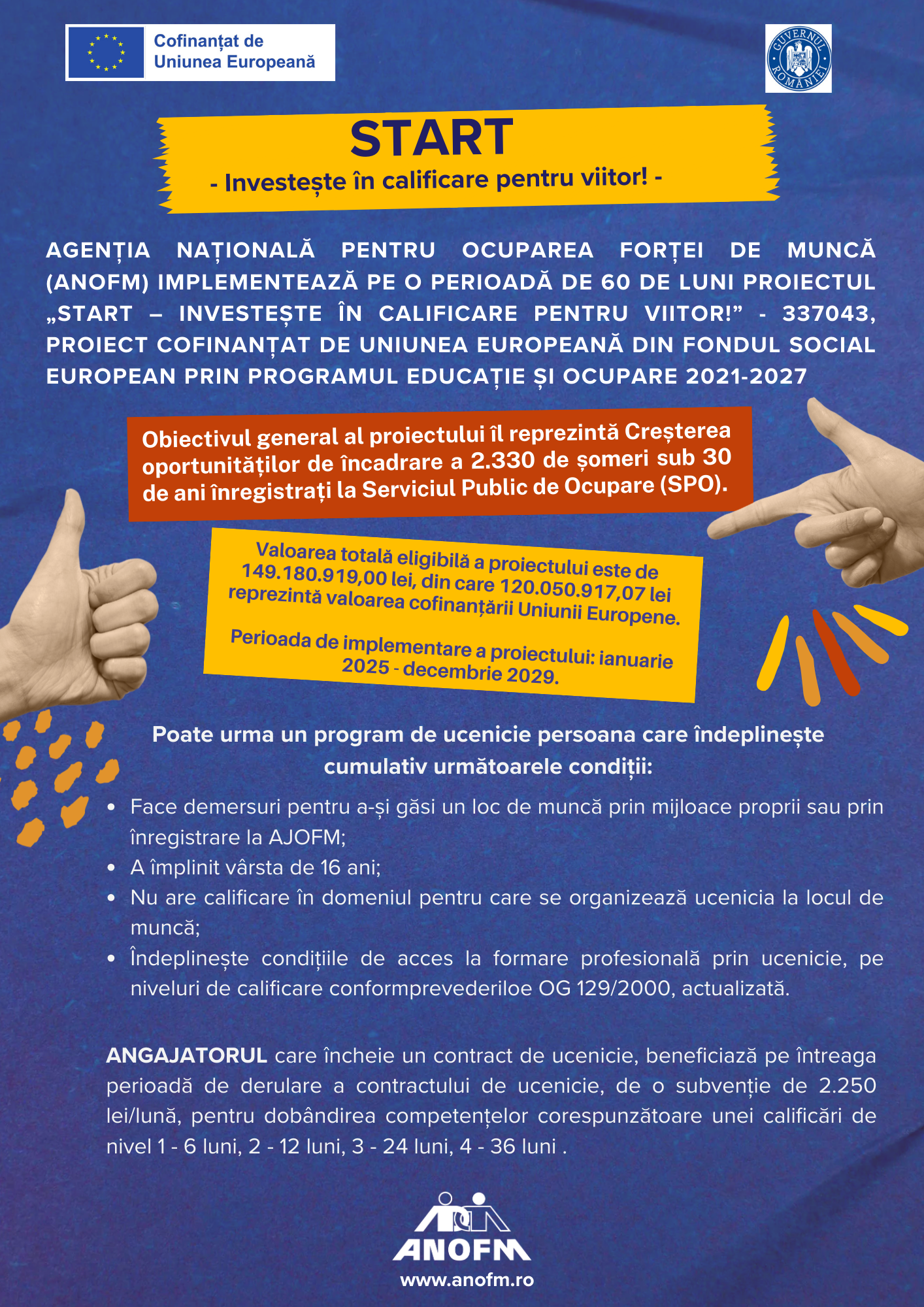 Comunicat de presă – ANOFM implementează proiectul “START – Investește în calificare pentru viitor!”