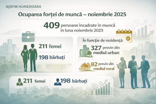 409 persoane şi-au găsit un loc de muncă, în cursul lunii noiembrie 2025, cu sprijinul AJOFM HUNEDOARA