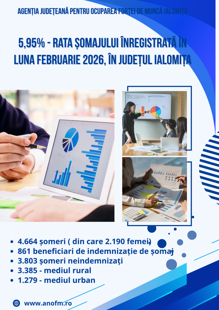Articolul următorArticol anterior6,01% – rata șomajului înregistrat în evidențele AJOFM Ialomița în luna ianuarie 2026