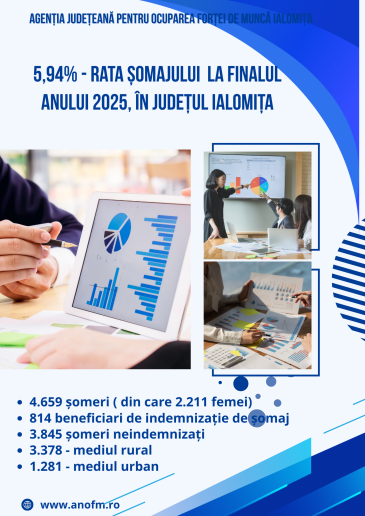 5,94% – rata șomajului înregistrat în evidențele AJOFM Ialomița în luna decembrie 2025