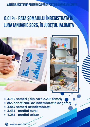168 persoane angajate prin intermediul AJOFM Ialomița în luna ianuarie 2026