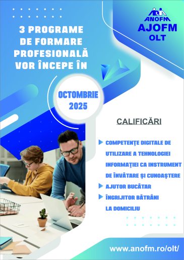 3 programe de formare profesională vor începe în luna OCTOMBRIE 2025, la nivel judeţean