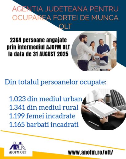 2.364 persoane incadrate prin intermediul AJOFM Olt, în primele opt luni ale anului 2025