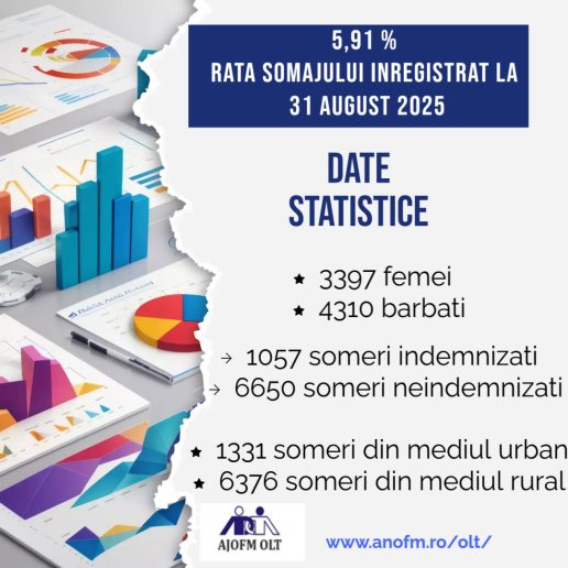 5,91 % – rata şomajului înregistrat în evidenţele AJOFM Olt în luna AUGUST 2025