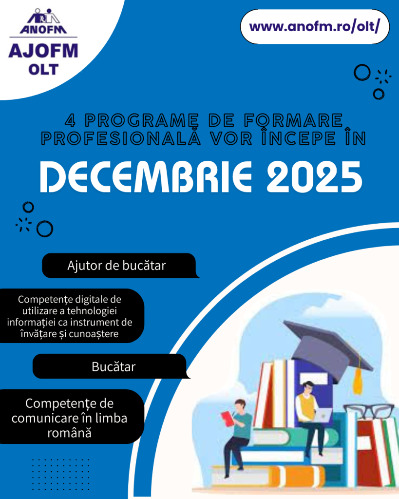 5 programe de formare profesională vor începe în luna decembrie 2025, la nivel judeţean 24/11/2025 Ultimele noutăți (slider) 5 programe de formare profesională vor începe în luna decembrie 2025, la nivel judeţeanDescarcă Distribuie facebook X linkedin email