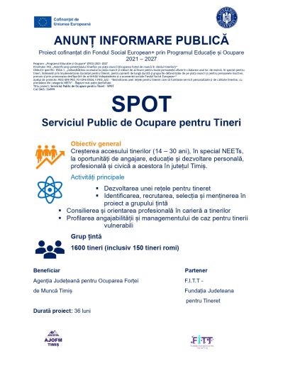 Proiect SPOT-Serviciul Public de Ocupare pentru Tineri